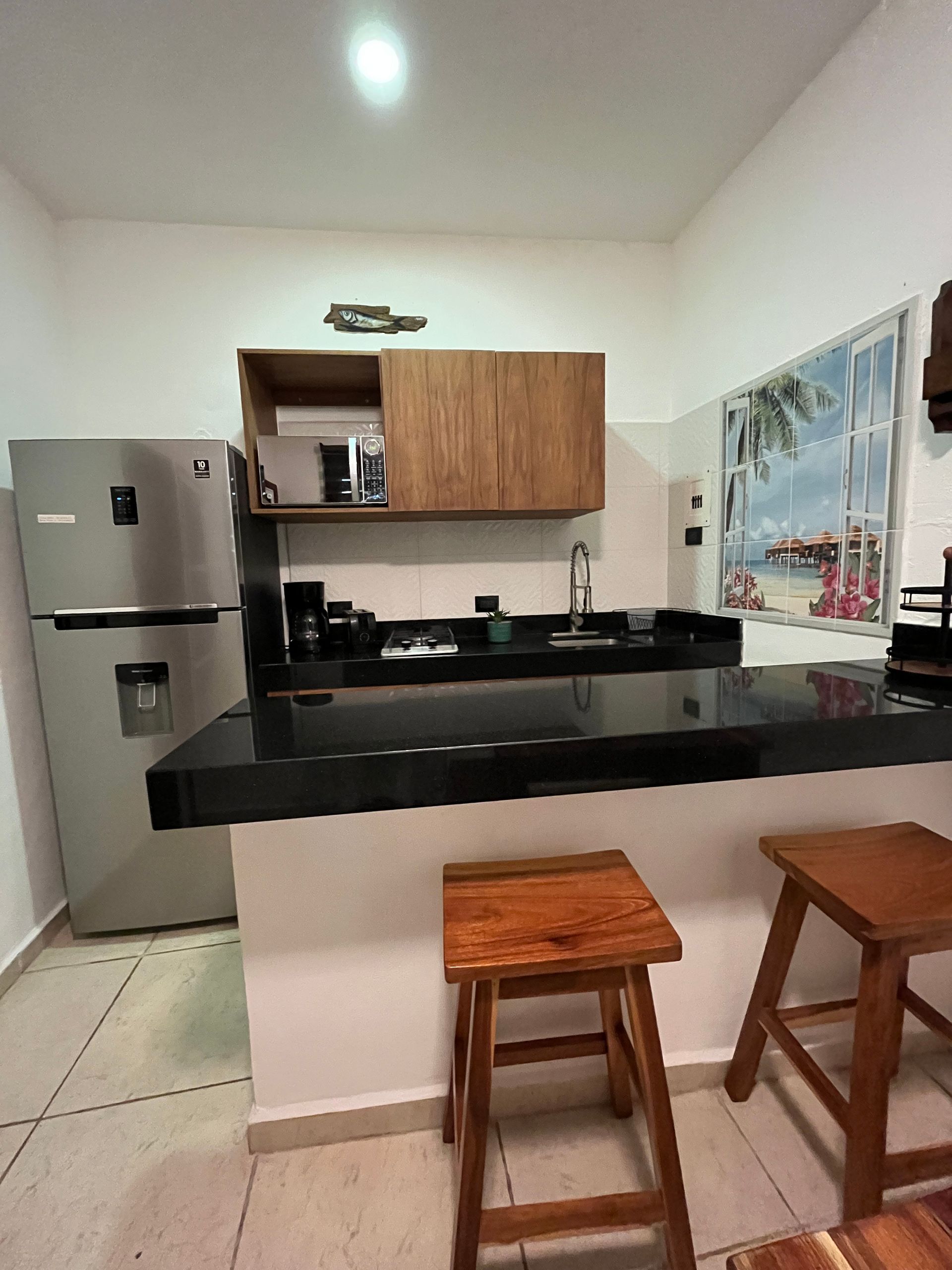 Contamos con cocineta en todas las habitaciones, así como piscina y terraza disponible para todos los huéspedes.